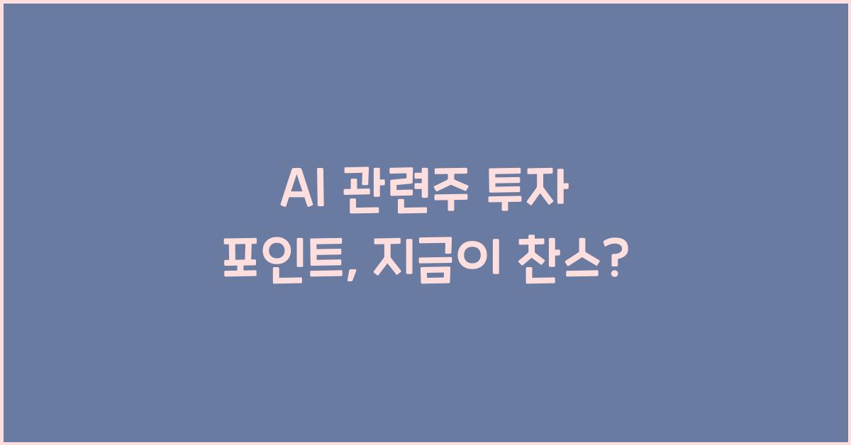 AI 산업의 성장과 투자 기회최근 몇 년간 AI 기술은 비약적으로 발전하며 다양한 산업에 영향을 미치고 있습니다. 이러한 변화는 단순히 기술적인 혁신을 넘어서 경제 전반에 큰 영향을 미치고 있습니다. 특히 AI 관련주 투자 포인트를 고려할 때, 이러한 산업의 성장세를 주목해야 합니다. 예를 들어, AI는 소비자 행동 분석, 물류 관리, 건강 관리 등 여러 분야에서 효율성을 높이는 역할을 하고 있습니다. 이는 기업들이 더 나은 결정을 내릴 수 있게 해주며, 결과적으로 그들의 실적을 향상시키고 있습니다. 따라서 AI 관련주 투자 포인트를 바탕으로 미래의 가능성을 엿봐야 합니다.AI 관련주 투자 포인트 더 알아보기AI 시장의 트렌드와 기업 투자 전략AI 시장에서 현재 가장 주요한 트렌드는 바로 데이터 활용입니..